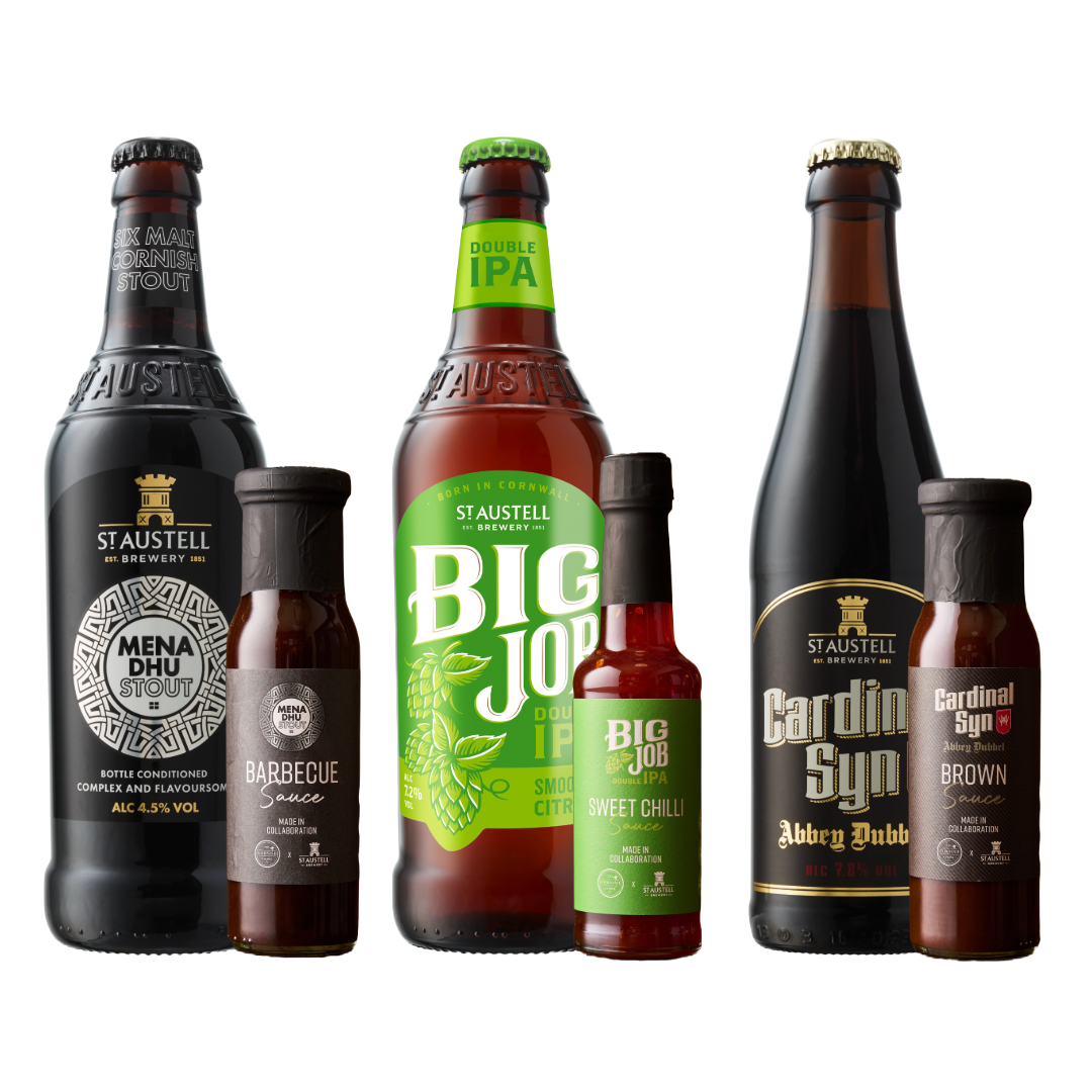 Ingredients: Tomato purée, malt vinegar (gluten, sulphites), dark brown sugar, treacle, dates, Cardinal Syn abbey dubbel (water, malted barley, hops, demerara sugar, coriander, yeast) (6%), salt, onion powder, tamarind, all spice, black pepper.