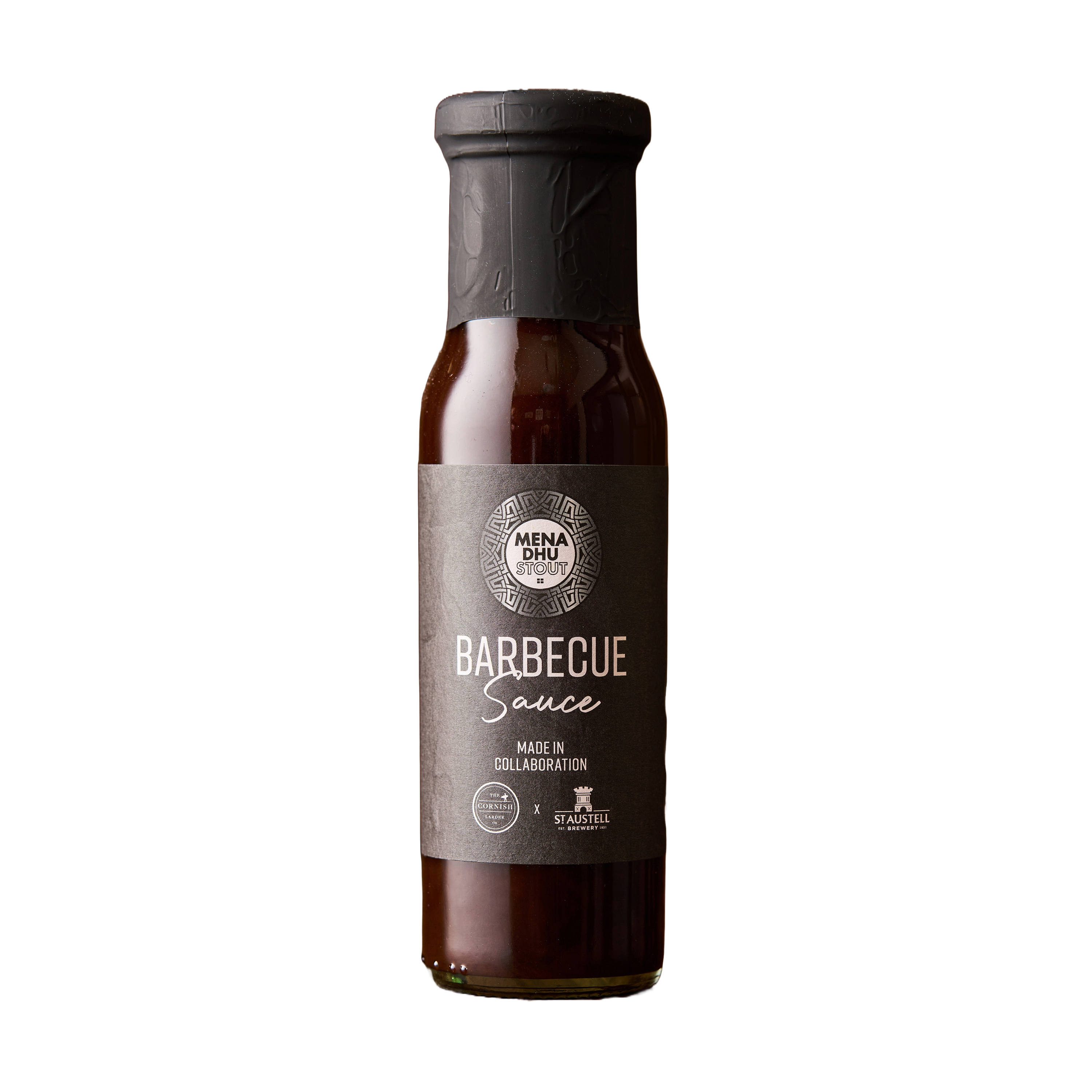 Ingredients: Dark brown sugar, malt vinegar (gluten, sulphites), tomato purée, treacle, Mena Dhu stout (water, malted barley, oats, hops, demerara sugar, liquorice, yeast) (5%), liquid smoke, spices (mustard), salt, onion powder, all spice, hops, garlic powder, liquorice root.