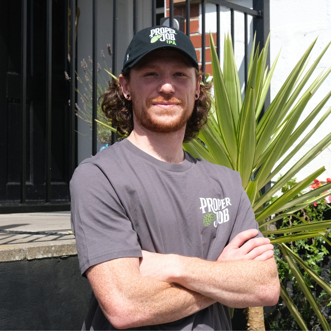 Modelled above by brewer Lee, our relaxed-fit Proper Job caps are made from 100% cotton with an embroidered Proper Job logo and clasp fastening at the rear of the hat.